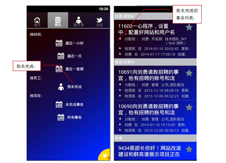 石開事務(wù)快速協(xié)作系統(tǒng)系統(tǒng)的主要功能:本系統(tǒng)基于行業(yè)內(nèi)網(wǎng)、互聯(lián)網(wǎng)、手機互聯(lián)網(wǎng)的集成設(shè)計、不受時間空間及終端的限制;主要有事務(wù)分派、事務(wù)流轉(zhuǎn)、過程跟蹤、事務(wù)短信通知等功能,事務(wù)提交隨時隨地、錄音拍照現(xiàn)場上傳,對事務(wù)進展時實提醒、手機短信通知完全免費;本系統(tǒng)應(yīng)用以后,可以對技術(shù)資料、專業(yè)經(jīng)驗、規(guī)章制度的長期積累,在系統(tǒng)進行知識全文檢索,達到技術(shù)和經(jīng)驗的復(fù)用。