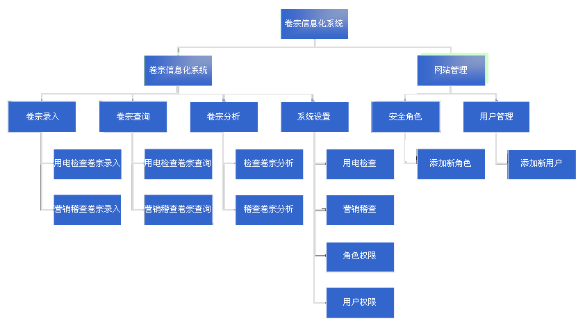 卷宗信息化管理系統(tǒng)主要負(fù)責(zé)電力系統(tǒng)業(yè)務(wù)工作中的卷宗數(shù)據(jù)管理,實(shí)現(xiàn)卷宗的電子化、檔案的規(guī)范化、和信息管理的集中化。所有錄入卷宗信息化系統(tǒng)的用電檢查和營(yíng)銷(xiāo)稽查卷宗均可通查詢系統(tǒng)進(jìn)行查詢,所有錄入系統(tǒng)的用電檢查和營(yíng)銷(xiāo)稽查案件在查詢系統(tǒng)里可以自動(dòng)生成為報(bào)表,同時(shí)對(duì)退補(bǔ)電量、電費(fèi)、違約使用電費(fèi)、造成損失、挽回?fù)p失等可以自動(dòng)累加合計(jì),對(duì)多次被處罰單位和個(gè)人有自動(dòng)提醒功能,提醒被處罰次數(shù)等功能。